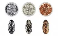 - Metaliczne płatki zapewniają niezwykły, wielowymiarowy efekt.