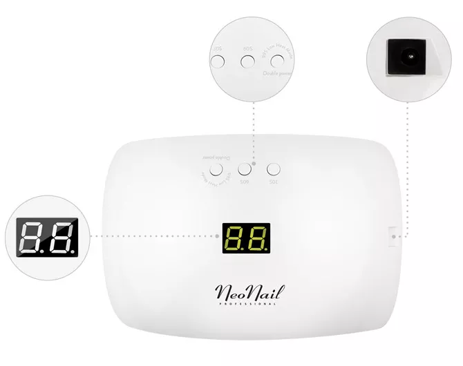 Lampa NeoNail wykorzystuje technologię Dual LED, emitując białe światło o dwóch długościach fal jednocześnie. To innowacyjne rozwiązanie zapewnia równomierne utwardzanie wszystkich typów lakierów hybrydowych, co przekłada się na dłuższą trwałość stylizacji.