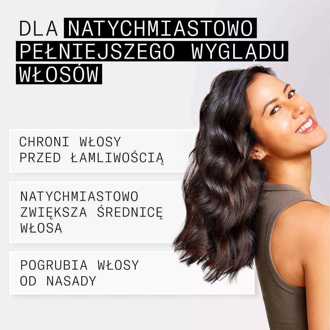 - Widocznie zwiększa objętość fryzury – efekt nawet do 11 000 włosów więcej*