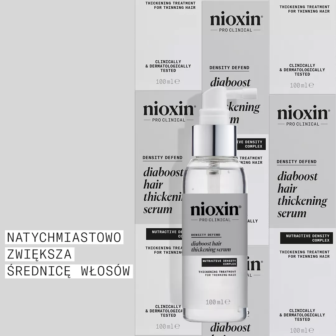 Nioxin Density Defend Diaboost to innowacyjne serum pogrubiające do włosów cienkich i przerzedzonych, które pozwala cieszyć się gęstszą, pełniejszą fryzurą każdego dnia. Wypróbuj Diaboost już dziś i przekonaj się, jak łatwo możesz zwiększyć objętość swoich włosów bez obciążania ich. Zaufaj doświadczeniu marki Nioxin i postaw na sprawdzone rozwiązania w pielęgnacji włosów!