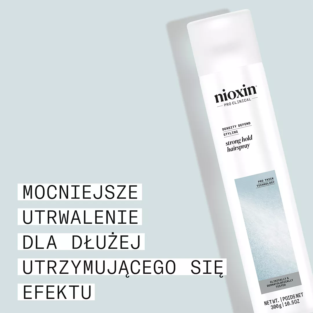 Poznaj Nioxin Density Defend – mocno utrwalający spray do włosów, który pozwala cieszyć się perfekcyjną fryzurą każdego dnia! To profesjonalny lakier stworzony z myślą o osobach pragnących uzyskać zdrowo wyglądające, pełne objętości i elastyczne włosy bez kompromisów. Dzięki zaawansowanej technologii ProThick oraz ponad 30-letniemu doświadczeniu marki Nioxin w pielęgnacji włosów przerzedzonych, spray zapewnia nie tylko mocne utrwalenie, ale również widoczną poprawę kondycji włosów już po pierwszym użyciu.