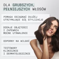 - Przyjemne w dotyku wykończenie, które umożliwia łatwe modelowanie i zmianę kształtu fryzury w ciągu dnia.
