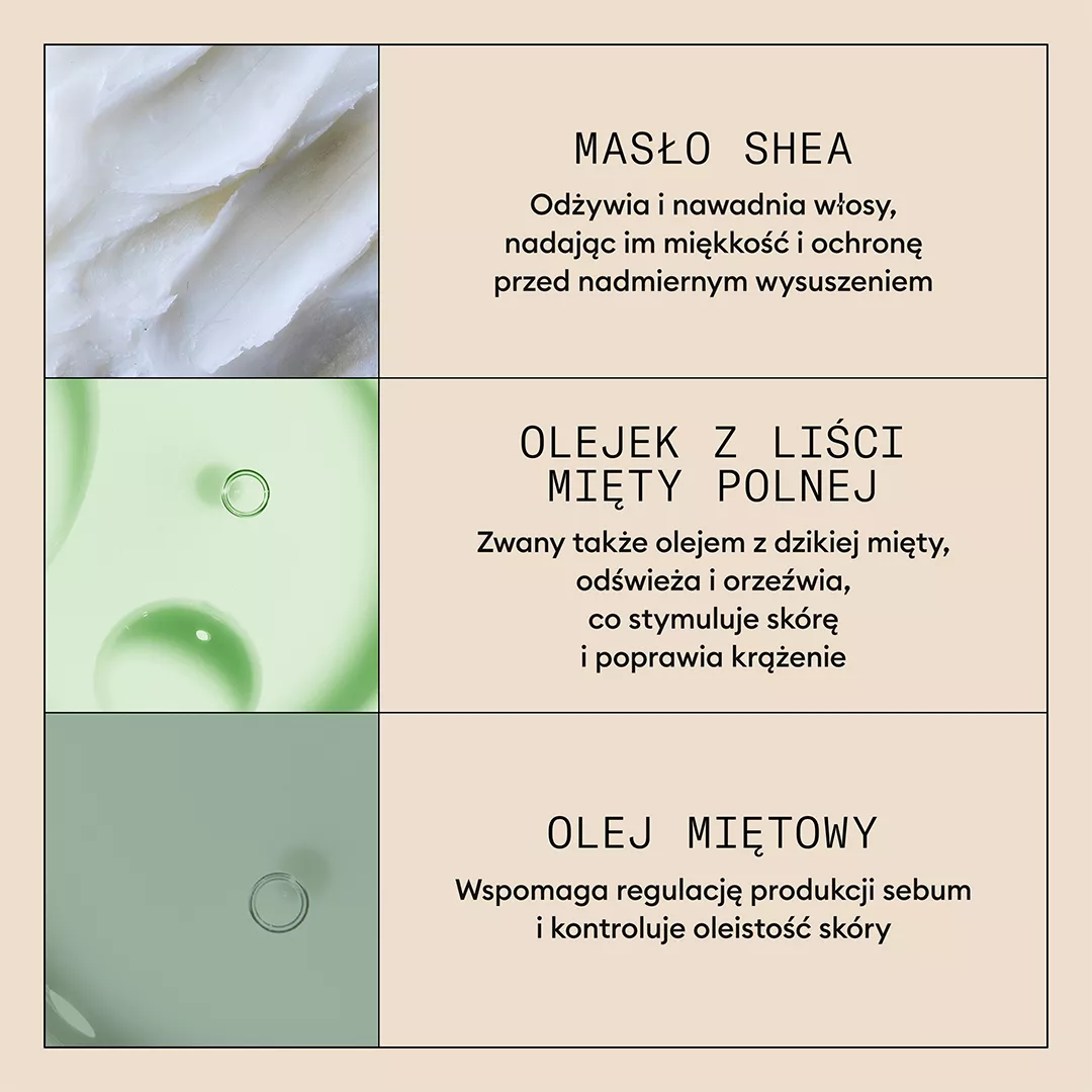- Ekstrakt z zielonej herbaty wspomaga przywrócenie naturalnej równowagi skóry głowy
