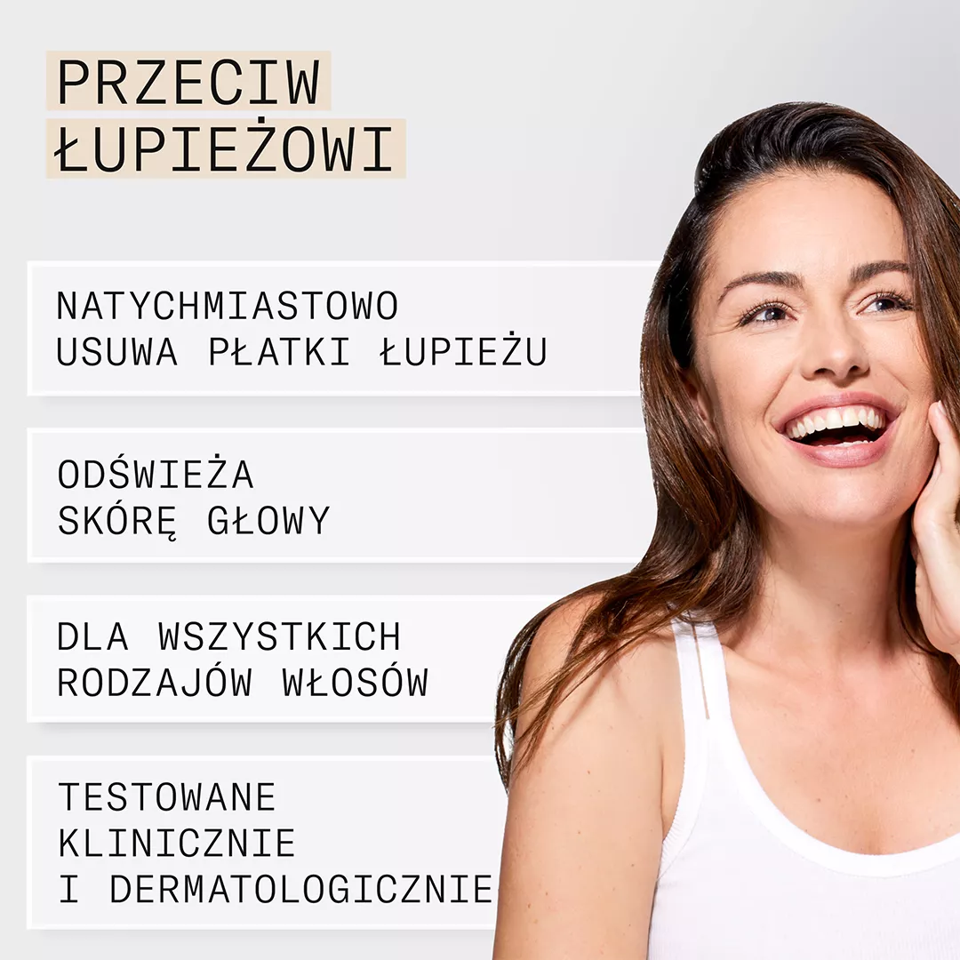 - Natychmiast usuwa widoczne łuski łupieżu, martwe komórki skóry i nagromadzone zanieczyszczenia