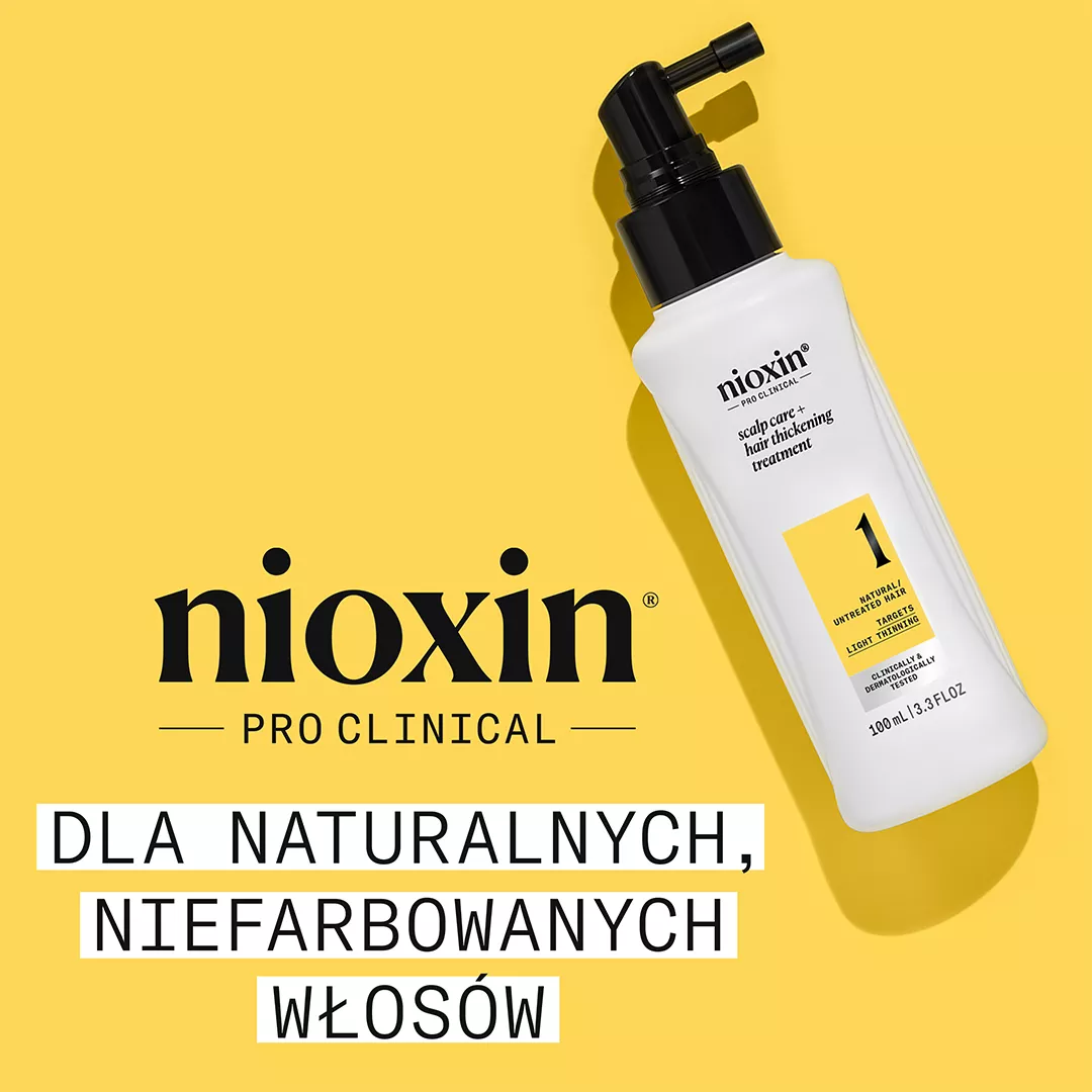 Odkryj profesjonalną pielęgnację dla włosów naturalnych z lekkim przerzedzeniem! Nioxin System 1 serum bez spłukiwania do skóry głowy i włosów naturalnych to skuteczne rozwiązanie dla osób pragnących gęstszych, mocniejszych i zdrowszych włosów. Dzięki ponad 30-letniemu doświadczeniu w pielęgnacji włosów przerzedzonych, marka Nioxin gwarantuje widoczne efekty już po pierwszym użyciu.