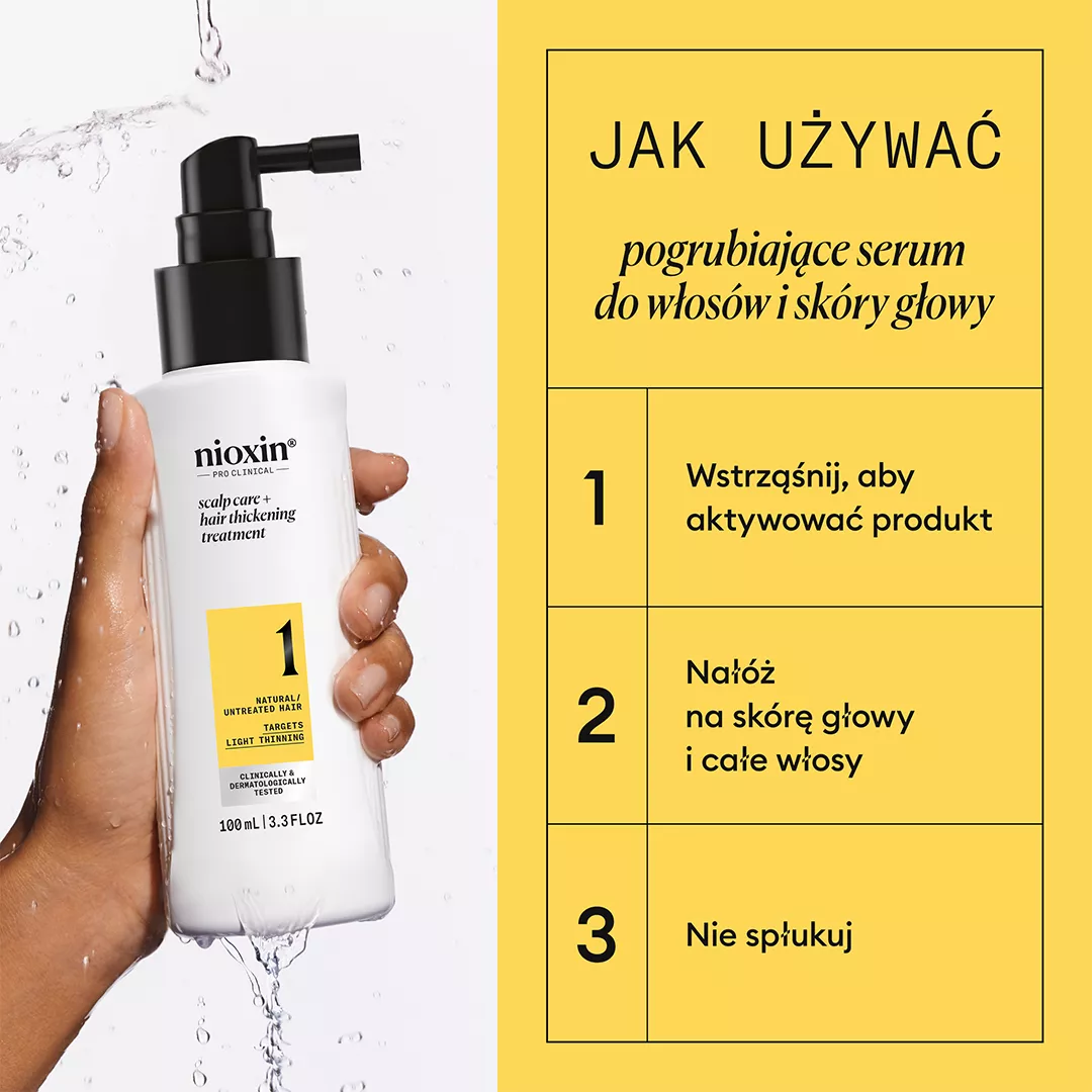 - Stosuj jako trzeci krok programu Nioxin System 1, po umyciu i odżywieniu włosów.