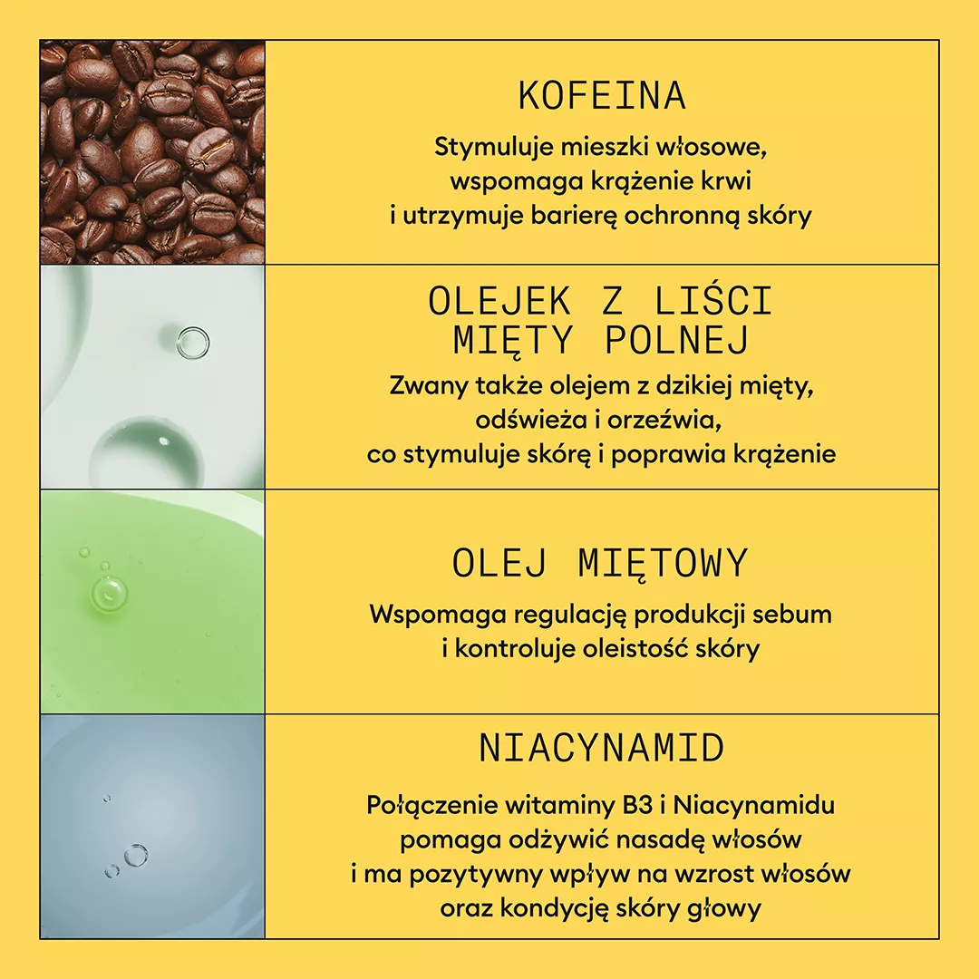 - Krok 3: Kuracja bez spłukiwania – aplikuj bezpośrednio na skórę głowy, nie spłukuj. Stosuj codziennie dla najlepszych rezultatów.