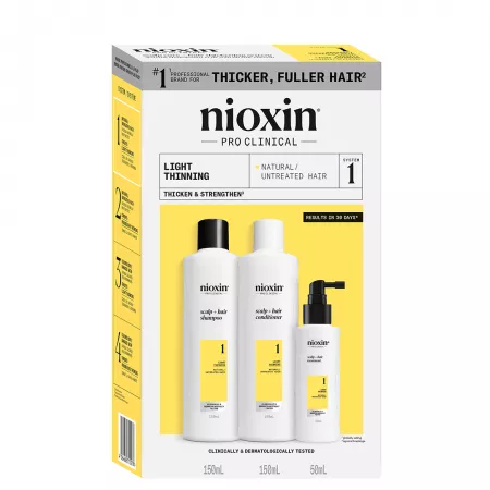 Wybierz Nioxin System 1, jeśli zależy Ci na profesjonalnej pielęgnacji włosów naturalnych z oznakami przerzedzenia. Dzięki regularnemu stosowaniu tego zestawu Twoje włosy staną się mocniejsze, grubsze i wyraźnie pełniejsze. Przekonaj się, jak łatwo możesz zadbać o zdrowy wygląd swoich włosów i skóry głowy. Zamów już dziś i poczuj różnicę, którą doceniło tysiące osób na całym świecie!