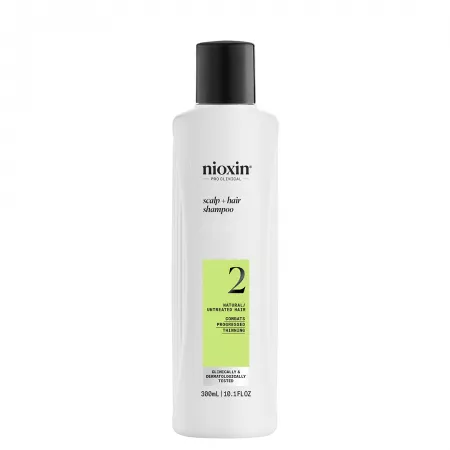 Szampon oczyszczający Nioxin System 2 dostępny jest w wygodnej butelce o pojemności 300 ml – idealny do codziennego stosowania.