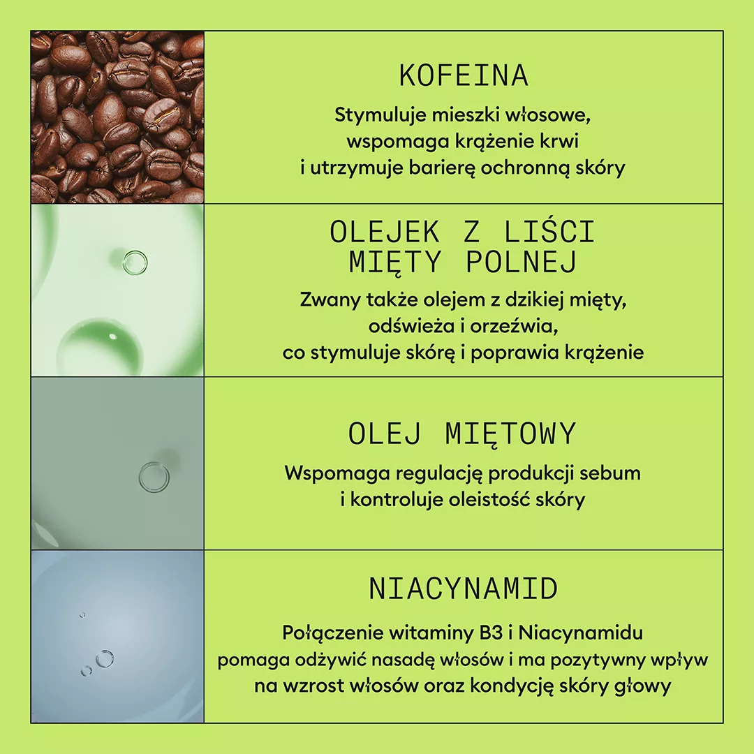 - Odświeża i intensywnie nawilża skórę głowy, poprawiając jej kondycję
