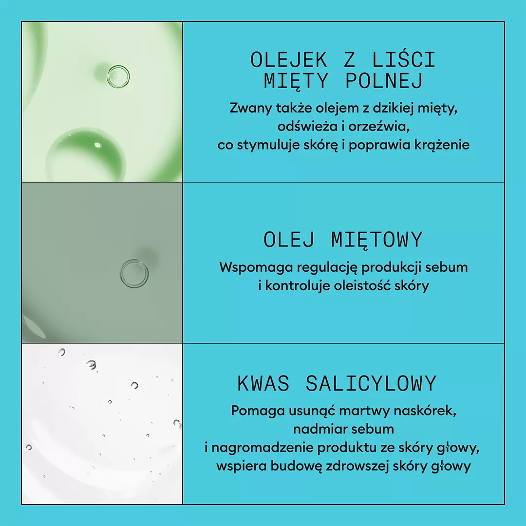 - Unikalna mieszanka olejku z dzikiej mięty, olejku z mięty pieprzowej oraz kwasu salicylowego.
