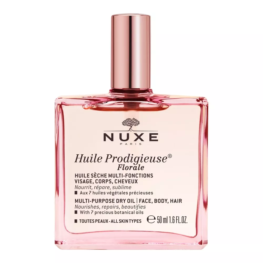 Odkryj Nuxe Huile Prodigieuse Florale - rewolucyjny suchy olejek regenerujący, który łączy w sobie moc 7 cennych olejków roślinnych, aby nawilżać, odżywiać i regenerować skórę twarzy, ciała oraz włosy. Dzięki swojej unikalnej konsystencji pozostawia satynowy połysk bez tłustego wykończenia, a jego kwiatowy zapach z nutami grejpfruta, magnolii i piżma dostarcza zmysłowych wrażeń.