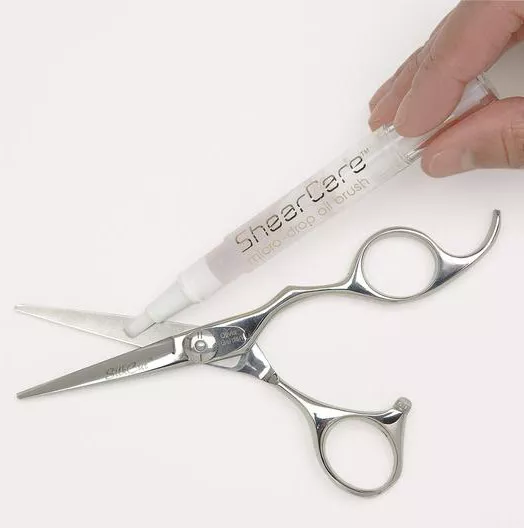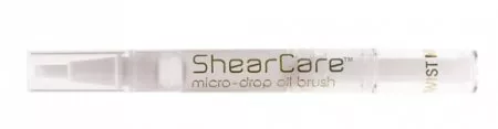 Wystarczy wcisnąć aplikator olejku, aby rozprowadzić odpowiednią ilość na pędzelku. Następnie delikatnie nałożyć oliwkę na ostrza nożyczek, co zapewnia im idealną konserwację.