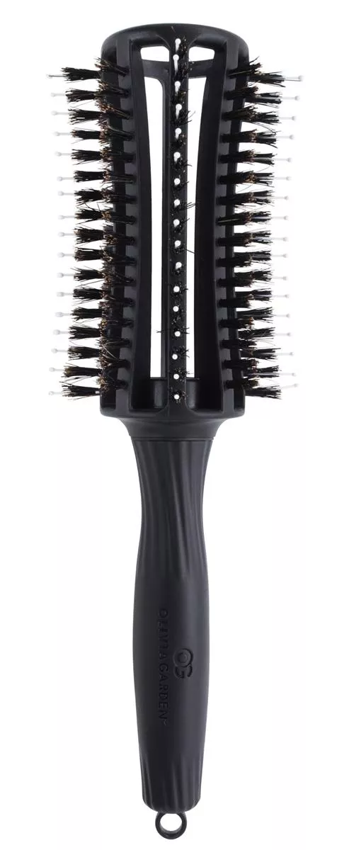 Odkryj wyjątkowe możliwości stylizacji z Olivia Garden Finger Brush Round – okrągłą szczotką z włosiem dzika w rozmiarze L, która doskonale dba o kondycję Twoich włosów. Dzięki innowacyjnej konstrukcji oraz mieszance włosia z dzika i nylonowych wypustek zakończonych bezpiecznymi kuleczkami, szczotka ta zapewnia niezwykle delikatne i efektywne modelowanie bez podrażniania skóry głowy.