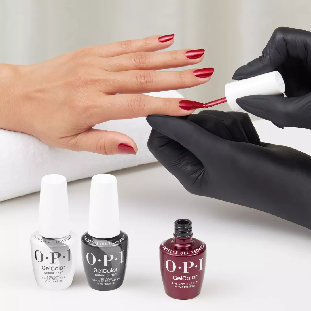 Aby uzyskać najlepsze rezultaty, przygotuj paznokcie za pomocą Bond-Aid pH Balancing Agent. Następnie nałóż GelColor Super Base Base Coat, utwardzaj przez 30 sekund. Nałóż dwie cienkie warstwy lakieru I'm Not Really a Waitress, utwardzając każdą przez 30 sekund. Zakończ aplikację OPI GelColor Super Gloss Top Coat, utwardzając przez 30 sekund i usuwając lepką warstwę za pomocą N.A.S. 99.