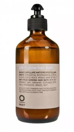 OWay Silk'n Glow to luksusowa kąpiel do włosów, która przekształca grube i puszyste włosy w jedwabiste, pełne blasku kosmyki. Specjalnie opracowany dla włosów suchych i łamliwych, ten szampon przywraca naturalne nawilżenie, wygładza powierzchnię włosów i zapobiega ich puszeniu, jednocześnie dodając im natychmiastowego blasku. Dyscyplinuje włosy bez ich usztywniania, dzięki czemu pozostają miękkie i elastyczne.