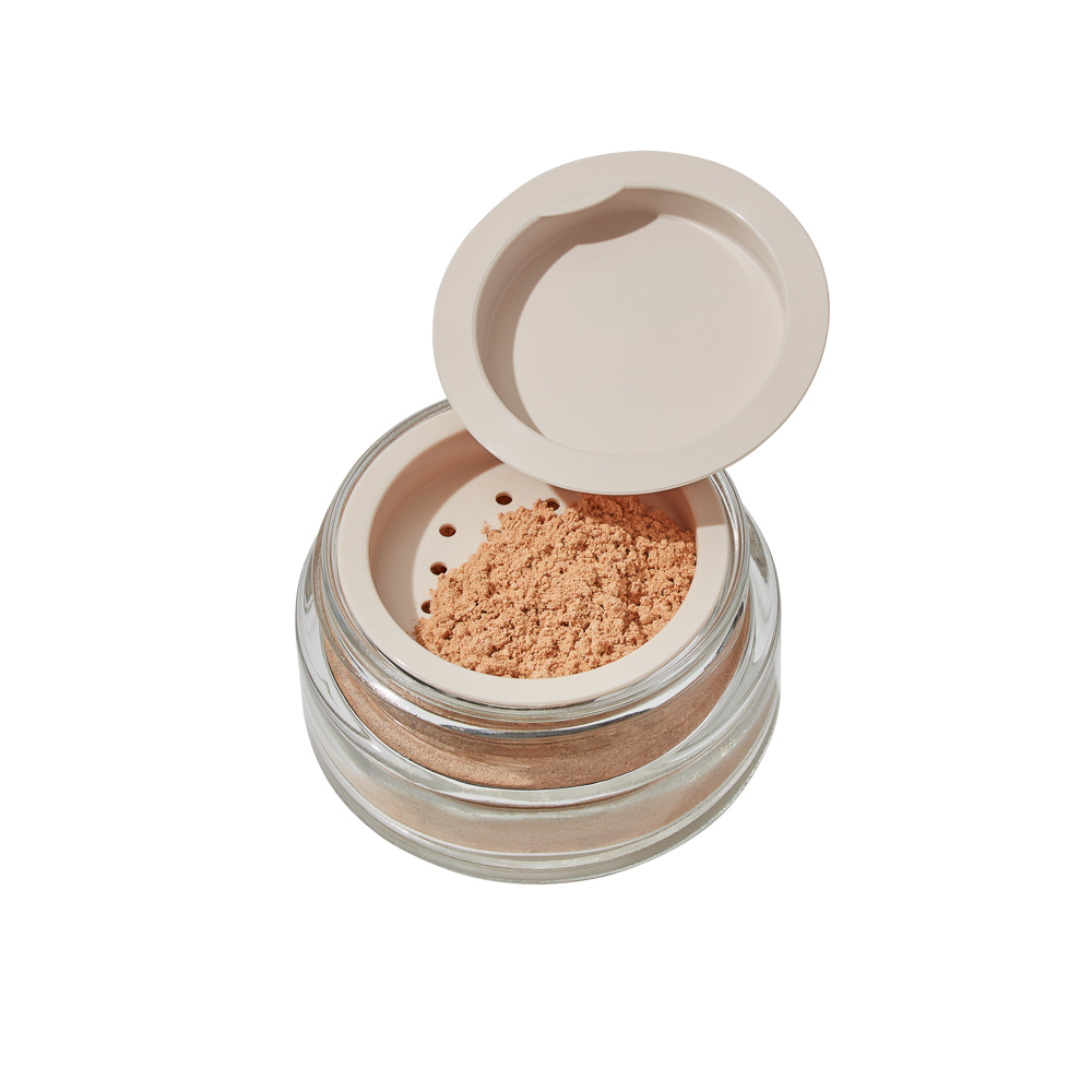 Wysyp niewielką ilość pudru na wieczko, zbierz pędzlem i rozprowadź na twarz lub jej wybrane partie, w zależności od efektu, jaki chcesz uzyskać.