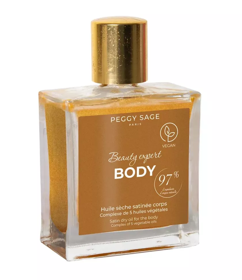 Odkryj luksusowy dotyk Peggy Sage Beauty Expert Body, suchego, aksamitnego olejku do ciała z brokatem, który podkreśla naturalne piękno Twojej skóry i włosów. Dzięki swojej unikalnej formule, wzbogaconej kompleksem 5 roślinnych olejków, ten produkt nie tylko nawilża, ale także nadaje skórze jedwabistą gładkość i subtelny blask złotych drobinek.