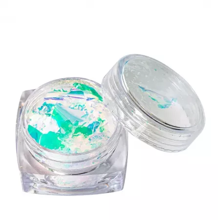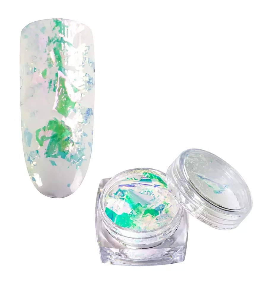 Odkryj magiczny świat stylizacji paznokci z Peggy Sage Aurora Flakes w zielonym odcieniu. Te pięknie mieniące się płatki brokatu dodadzą Twoim paznokciom wyjątkowego blasku i trójwymiarowego efektu. Dzięki różnokolorowym opalizującym kawałkom cieniutkiej folii, każda stylizacja nabierze nowoczesnego i niepowtarzalnego charakteru.