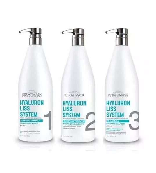 Zestaw nanoplastia PLACENTA LIFE Keratimask HYALURON LISS SYSTEM to profesjonalna linia kosmetyków do prostowania oraz głębokiego nawilżenia i intensywnej odbudowy włosów. Idealna do włosów kręconych, falowanych oraz nadmiernie się puszących. Bez formaldehydów, z kwasem hialuronowym i organicznym kwasem glioksalowym oraz z keratyną. Skutecznie odbudowuje i nawilża włosy, dzięki czemu zmniejsza objętość oraz puszenie się włosów, pozostawiając wygładzone lśniące i miękkie włosy. W pełni bezpieczny i skuteczny system odbudowy zniszczonych włosów.