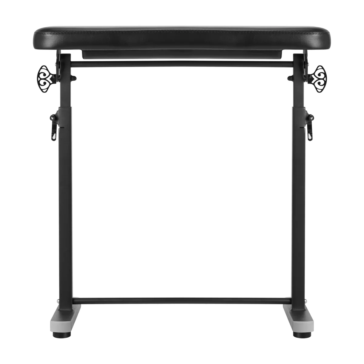 Podłokietnik posiada możliwość regulacji wysokości w granicach 68-111 cm, co pozwala dostosować go do różnych klientów i gwarantuje optymalne podparcie podczas sesji tatuażu. Dzięki funkcji regulacji nachylenia, można dostosować ustawienie podłokietnika do indywidualnych potrzeb klienta, co zapewnia jeszcze większy komfort podczas wykonywania tatuażu.