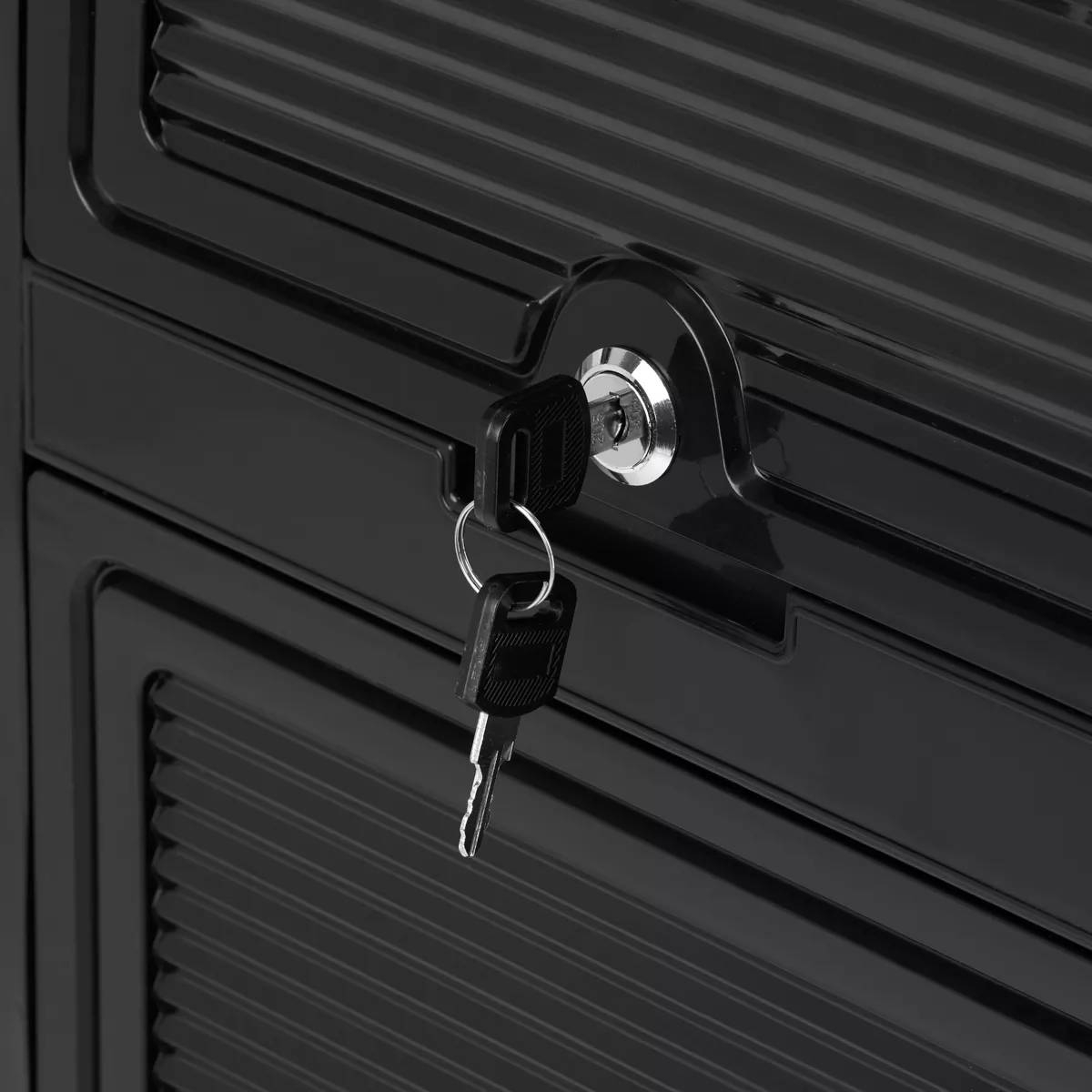 Zabudowany tył oraz możliwość zamknięcia drzwiczek na klucz i zabezpieczenia w ten sposób szuflad przed wysunięciem gwarantują bezpieczeństwo ułożonych w pomocniku przyborów. Rozwiązanie to sprawdzi się zwłaszcza w przypadku usług mobilnych, gdzie w transporcie produkty są bardziej narażone na uszkodzenie.