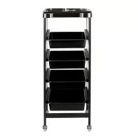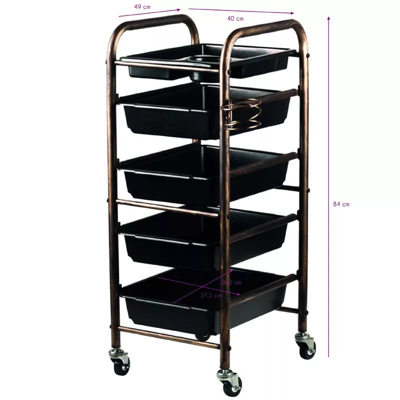 - Funkcjonalność: Wyposażony w 4 praktyczne kuwety oraz uchwyty na asortyment fryzjerski, zapewnia wygodny dostęp do narzędzi.