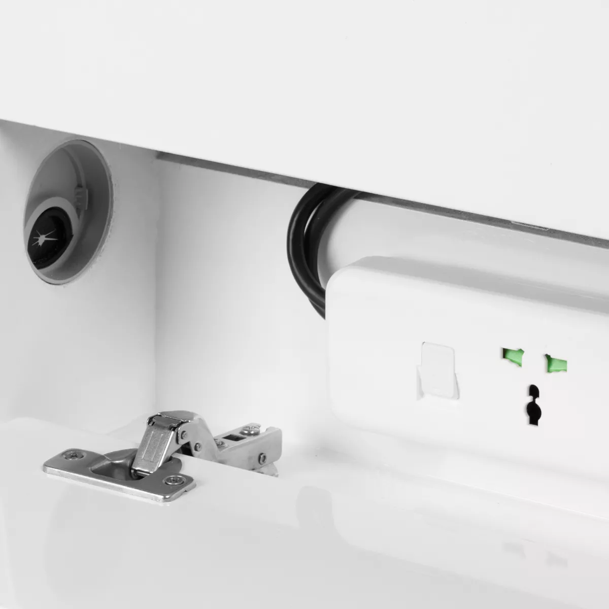- Specjalna półka na frezarkę podologiczną lub inne urządzenia zapewnia dodatkową przestrzeń roboczą.