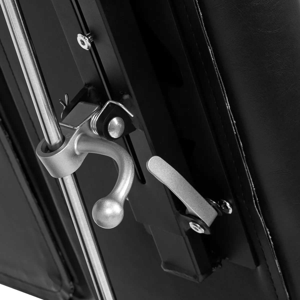 Prosty, minimalistyczny wygląd i klasyczna kolorystyka sprawiają, że fotel doskonale sprawdzi się w każdym salonie tatuażu, znacznie uefektywniając komfortowe wykonywanie usług. Funkcjonalny fotel ułatwia przyjęcie komfortowej pozycji zarówno osobie tatuowanej, jak i artyście. Wypełnienie z odpornej na odkształcenia pianki, pokrycie z przyjemnej w dotyku skóry syntetycznej w odcieniach czerni i stabilny metalowy stelaż zapewniają trwałość oraz łatwość czyszczenia sprzętu. Estetyczne, proste przeszycia nadają mu wyjątkowego charakteru. Koła umieszczone w jednej części podstawy sprawiają, że przestawianie mebla jest znacznie ułatwione.