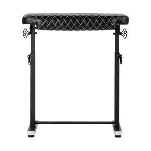Solidny stelaż w odcieniach czerni wykonany z metalu zapewnia stabilność i trwałość podłokietnika, co jest niezwykle istotne podczas pracy tatuażysty. Obicie ze skóry syntetycznej w odcieniach czerni z eleganckim białym pikowaniem zapewnia łatwość czyszczenia sprzętu. Nowoczesny design uatrakcyjni wystrój wnętrza salonu tatuażu, podkreślając wyjątkowy charakter miejsca. Połączenie wygody, funkcjonalności i stylu, które z pewnością zadowoli zarówno profesjonalistów, jak i klientów salonu tatuażu. Podłokietnik znacząco ułatwia pracę, ale także pomaga stworzyć przyjemny klimat w salonie i podkreśla jego atmosferę.