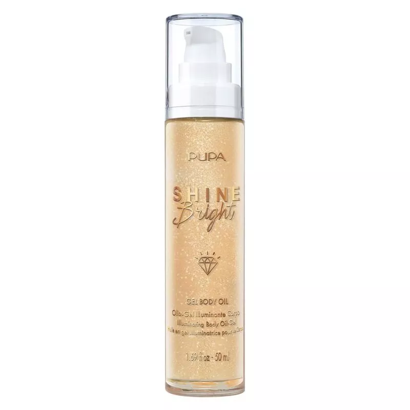 Odkryj niezwykły blask z Pupa Shine Bright – rozświetlającym, żelowym olejkiem do ciała w odcieniu gold diamond. Ten luksusowy produkt o pojemności 50ml wzmacnia i odżywia skórę, nadając jej jedwabisty połysk bez uczucia tłustości.
