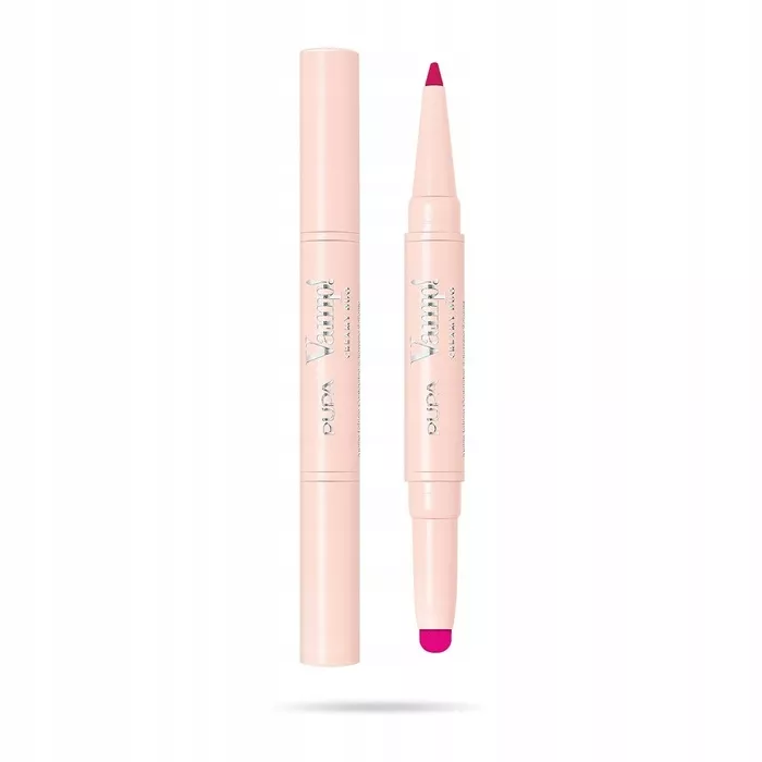 Odkryj wyjątkowy duet kosmetyczny PUPA Vamp! Creamy Duo, łączący w sobie precyzyjną konturówkę do ust oraz kremową pomadkę w odcieniu Flamingu Fuchsia. Ten innowacyjny produkt nie tylko definiuje i modeluje kształt ust, ale także nadaje im wyrazistości i objętości, sprawiając, że stają się one pełniejsze i bardziej zmysłowe.