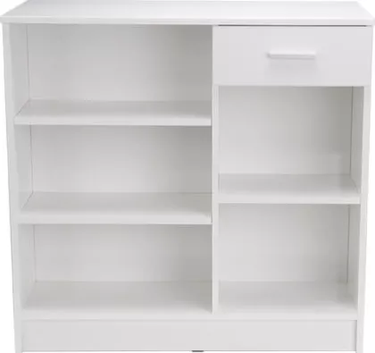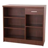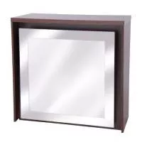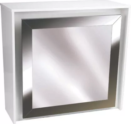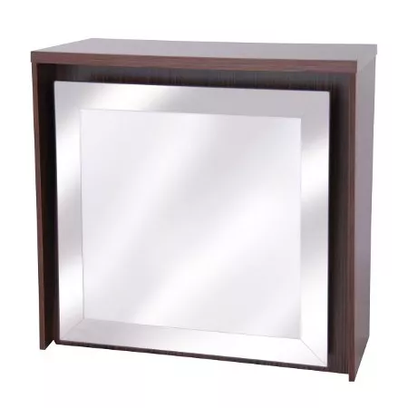 Efektowna recepcja fryzjerska Ayala Kirke, której front stanowi podświetlane lustro w ramie ze stali nierdzewnej. Może być wykonana w kilkunastu wzorach płyty meblowej do wyboru.