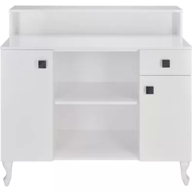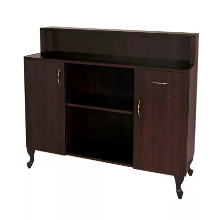 Wyjątkowo elegancka i stylowa recepcja Ayala Madame podkreśli charakter wnętrza każdego salonu fryzjerskiego. Dostępna w wielu wariantach płyty meblowej do wyboru. Pikowane elementy tapicerki dostępne w skaju polskim i włoskim. System cichego domykania w cenie. Możliwość montażu zamka w szufladzie lub szafkach.