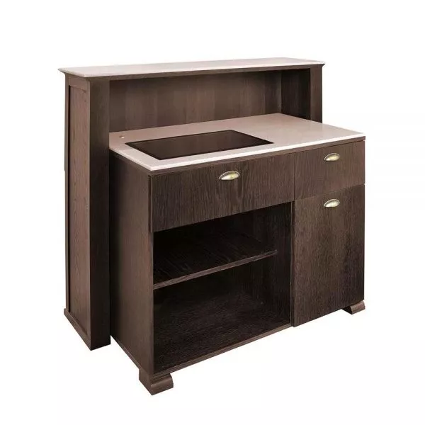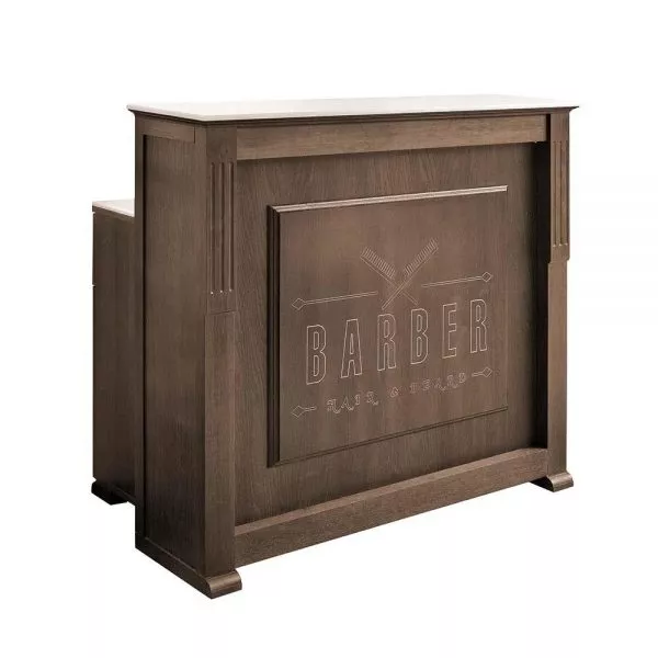 Recepcja barberska z drewnianym blatem lub blatem kompozytowym (za dopłatą).