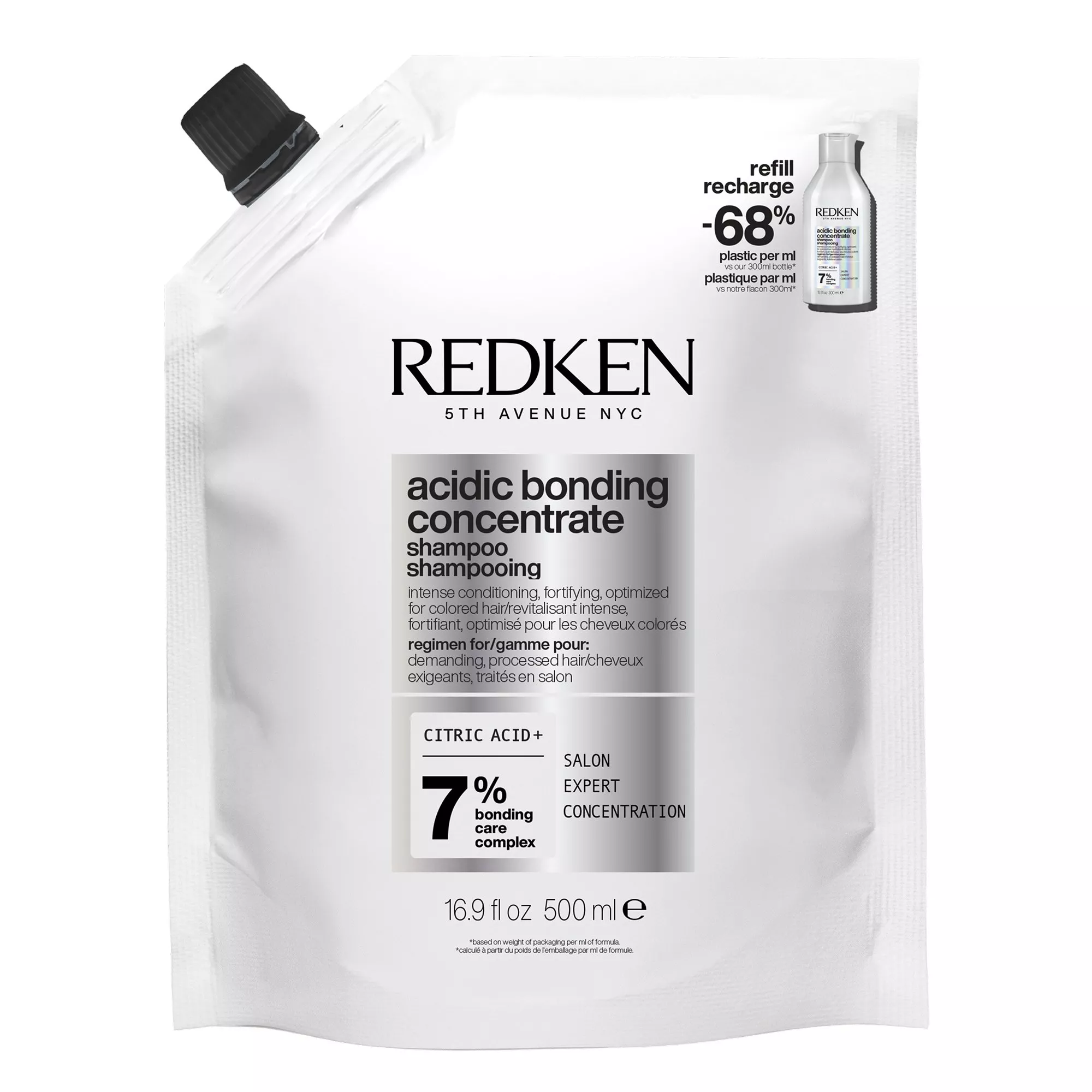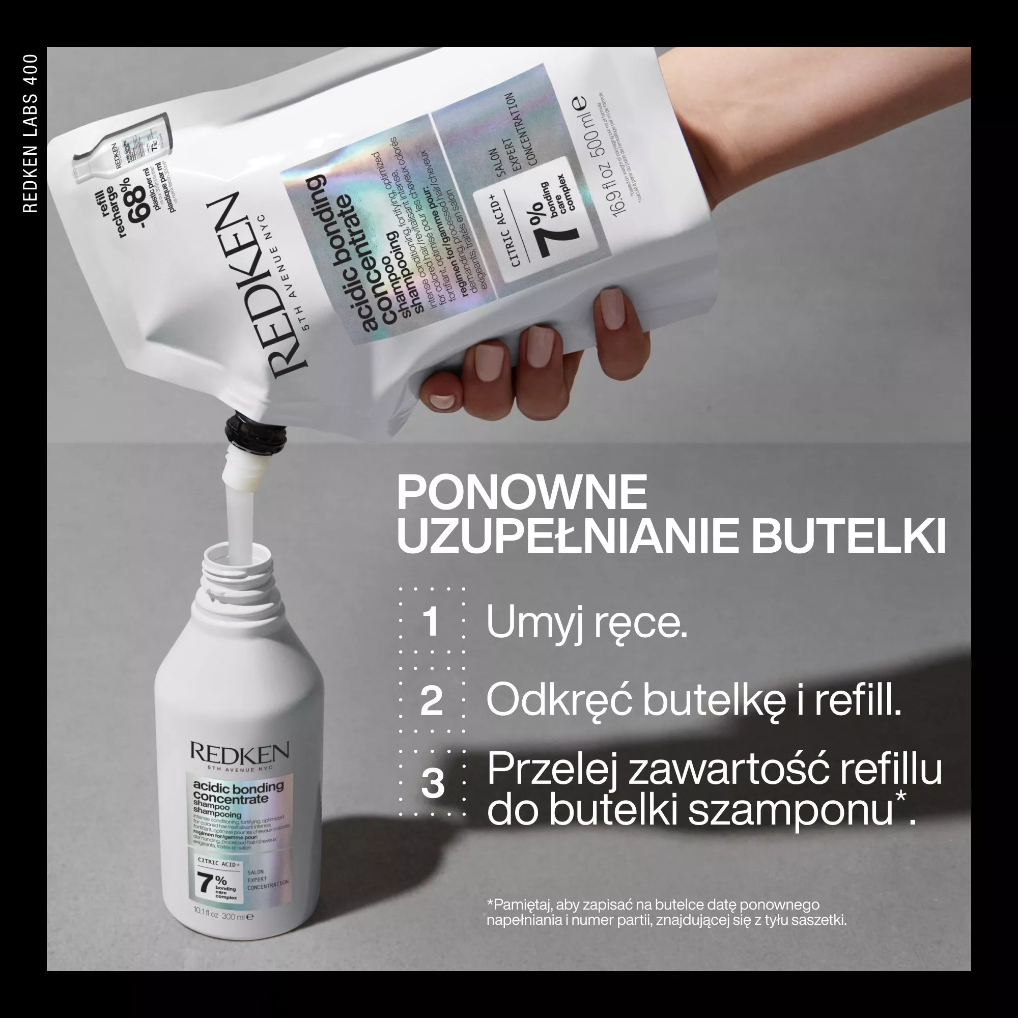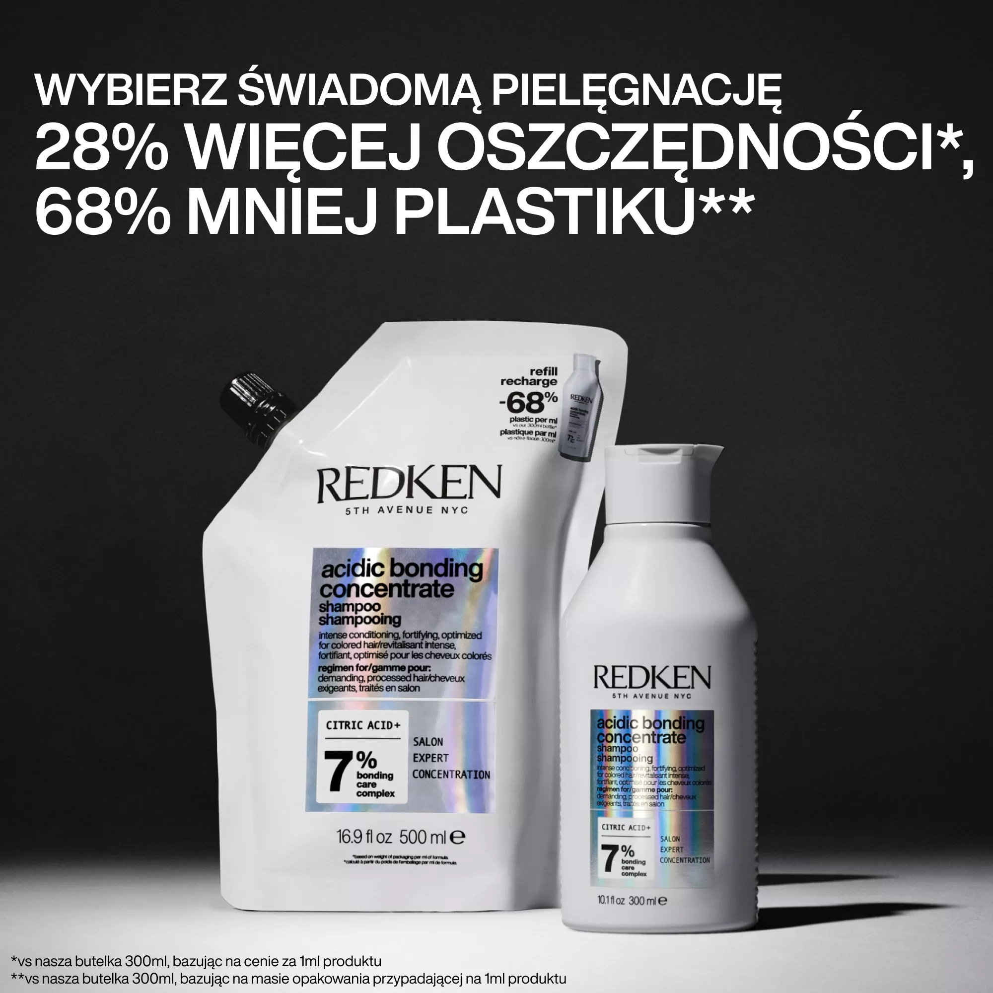 Odkryj Twoje ulubione szampony Redken w formacie refill. Wybierając opakowanie refill zyskujesz aż 28% więcej oszczędności* i zużywasz aż 68% mniej plastiku**.