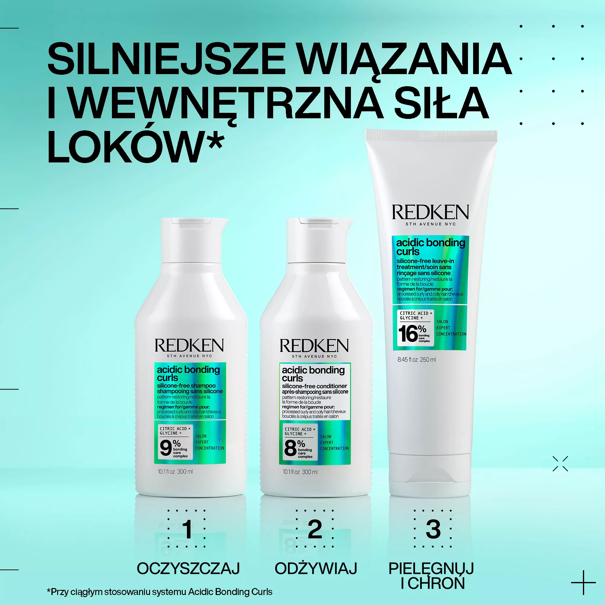 * Przy ciągłym stosowaniu, system Acidic Bonding Curls
