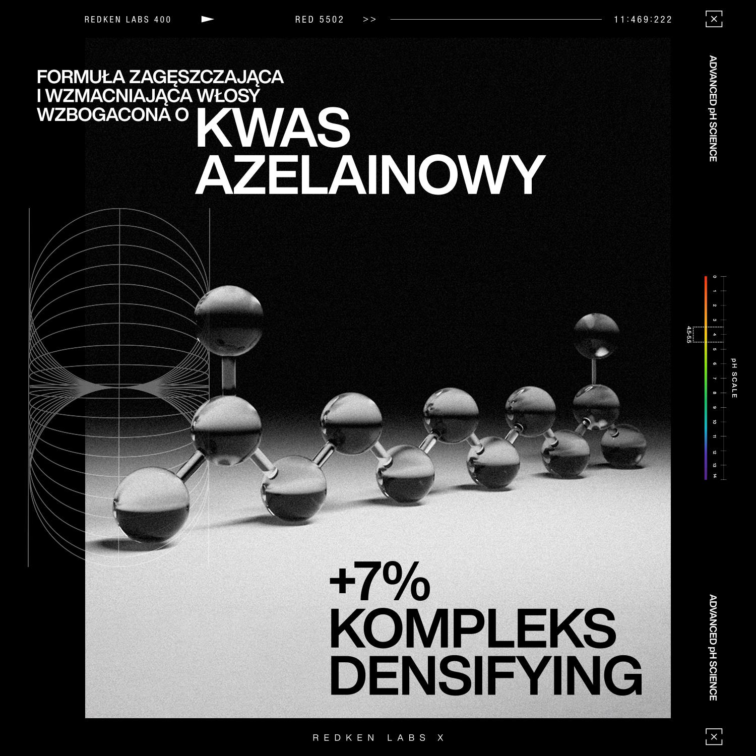 Kwas Azelainowy: przywraca odpowiednią równowagę pH skóry głowy (4.5-5.5) i stabilizuje środowisko wokół mieszków włosowych, zapewniając im ochronę oraz tworząc idealne środowisko dla wzrostu nowych włókien.