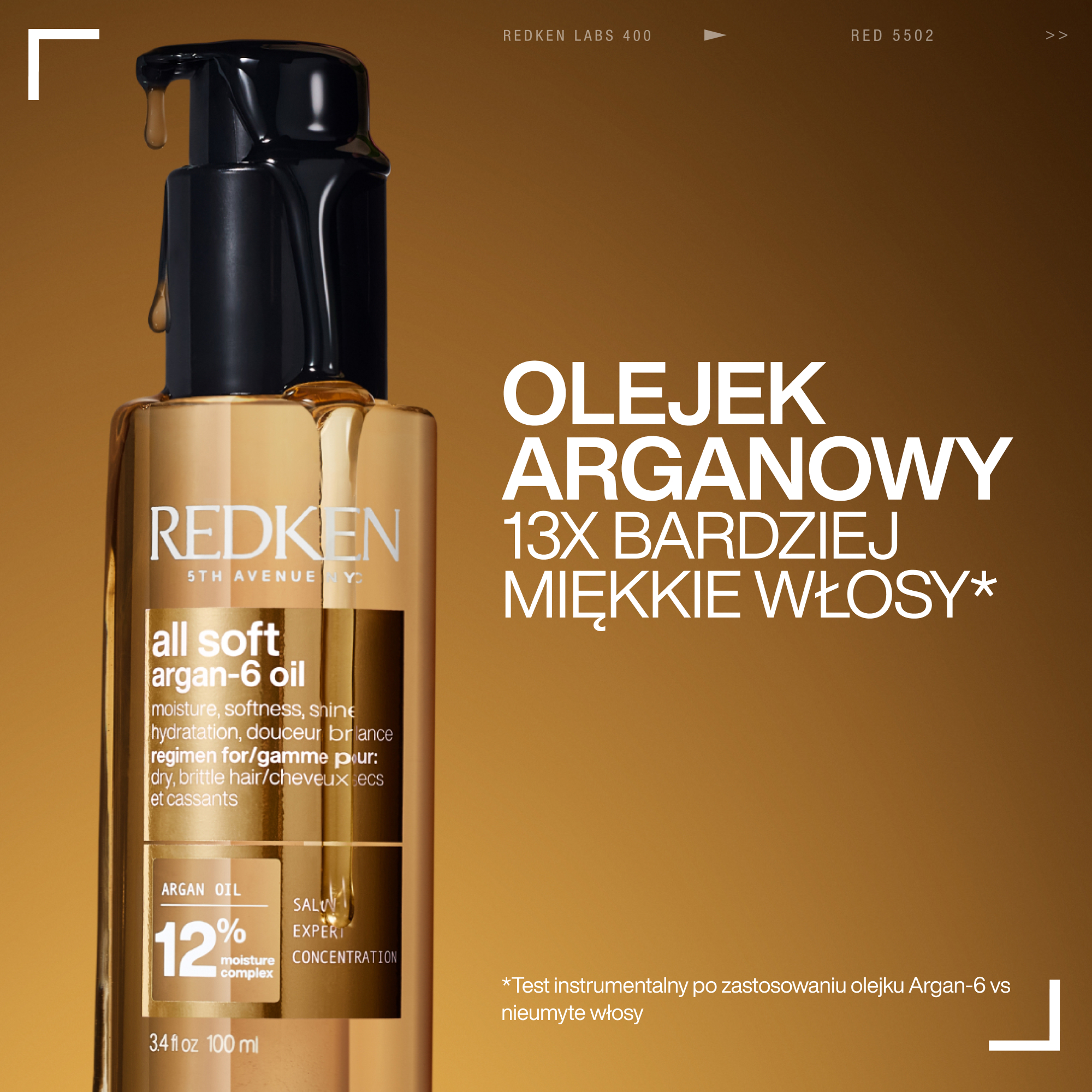 Redken All Soft Argan-6 Oil, olejek arganowy do włosów suchych i łamliwych, 100ml