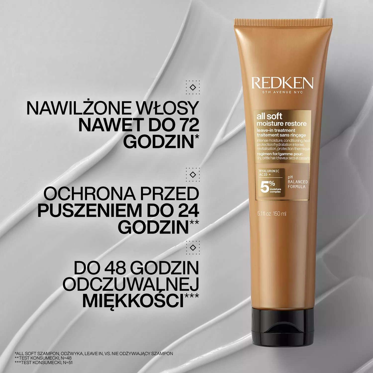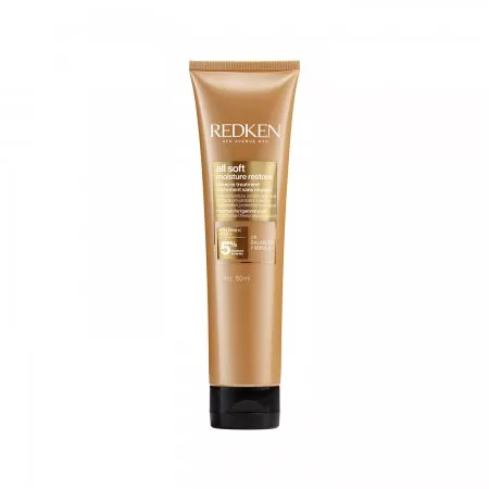 Odżywka do włosów bez spłukiwania Redken All Soft Moisture Restore zawiera kwas hialuronowy, który dostarcza pasmom dawkę potrzebnego nawilżenia, pozostawiając je miękkie, lśniące i gładkie. Kwas hialuronowy tworzy otoczkę na włosach, dzięki czemu nie ucieka z nich wilgoć, proteiny czy inne składniki. Odżywka zawiera także olejek arganowy o właściwościach wygładzających i nabłyszczających. Ale to nie wszystko! Ten kosmetyk od Redken zapewnia także termoochronę.