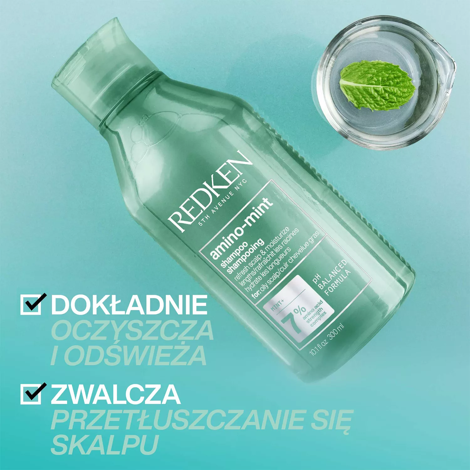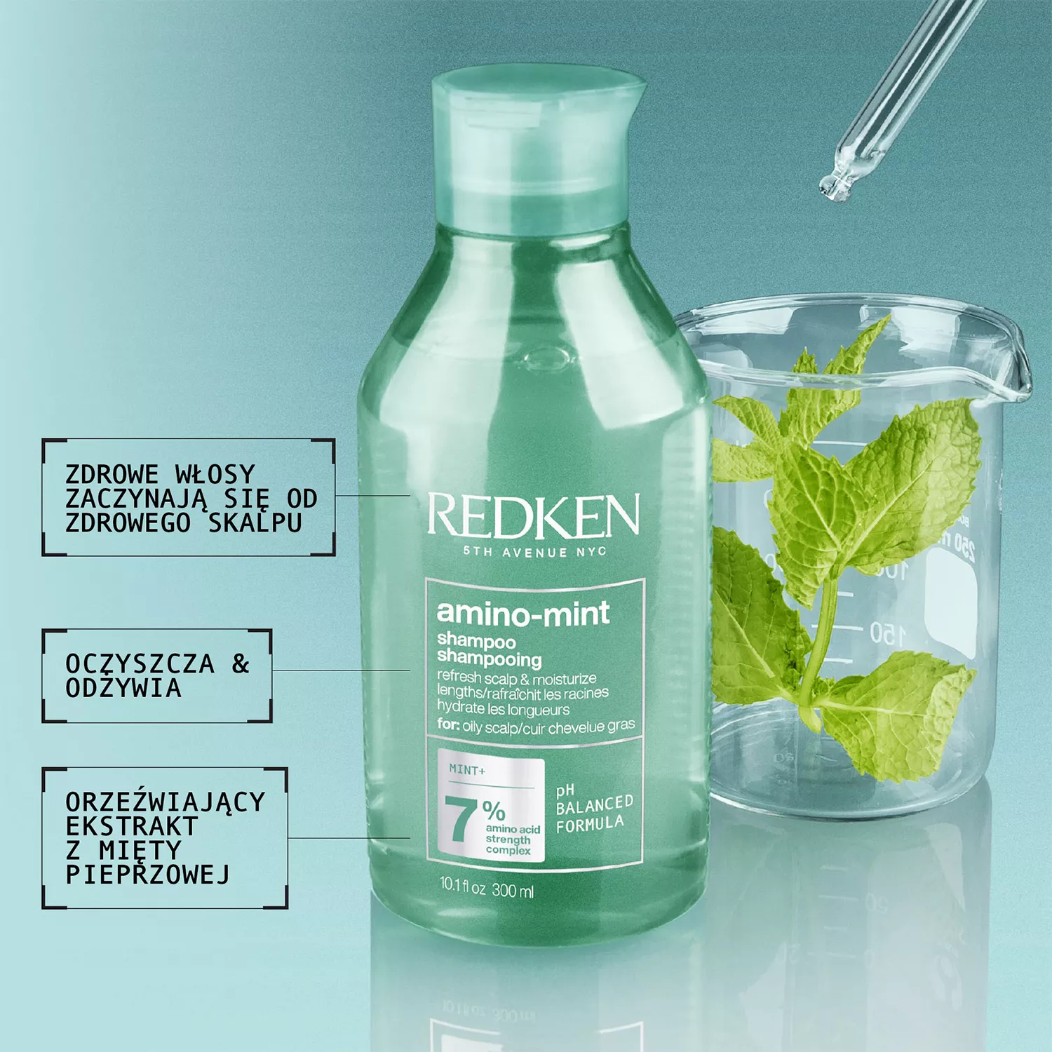 Szampon oczyszczający Redken Amino-Mint przynosi przyjemne uczucie odświeżenia. W składzie ekstrakt z mięty pieprzowej. Szampon rozwiązuje problem nadmiernego przetłuszczania się skóry głowy, odświeża, nawilża na długościach. Ponadto daje uczucie przyjemnego chłodu. Zmniejsza uczucie dyskomfortu. Mięta pieprzowa orzeźwia i łagodzi, ma właściwości chłodzące. Zawarty w szamponie Redken kwas salicylowy redukuje problemy skóry.