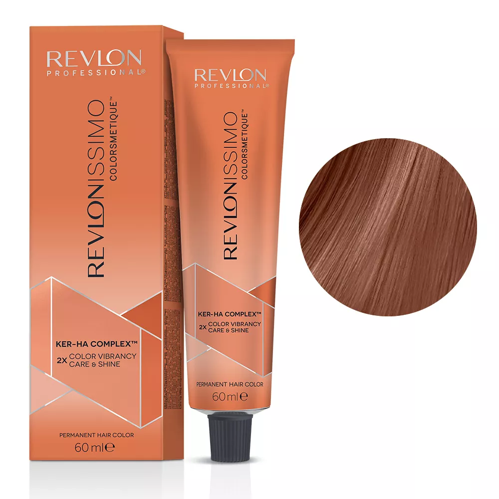 Farba Revlonissimo Colorsmetique to produkt do użytku profesjonalnego, który zmniejsza elektryzowanie się włosów i nadaje im wspaniałą miękkość oraz połysk. Dzięki swojej wydajności, jedno opakowanie wystarcza na dwa farbowania (włosy od krótkich do półdługich). Aby uzyskać najlepsze rezultaty, należy dokupić odpowiedni utleniacz.