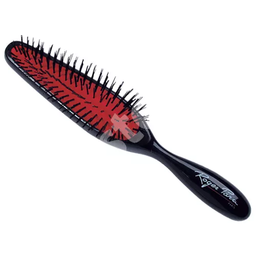 Pneumatyczna szczotka do włosów sztucznych Roger Para to niezastąpione narzędzie dla każdego, kto chce zadbać o przedłużane włosy, treski czy peruki. Dzięki swojej konstrukcji idealnie nadaje się do wszystkich rodzajów włosów sztucznych. Szczotka posiada 6 rzędów piór z czarnego nylonu oraz owalny kształt, co sprawia, że doskonale sprawdzi się zarówno w profesjonalnym salonie fryzjerskim, jak i w domowym zaciszu.