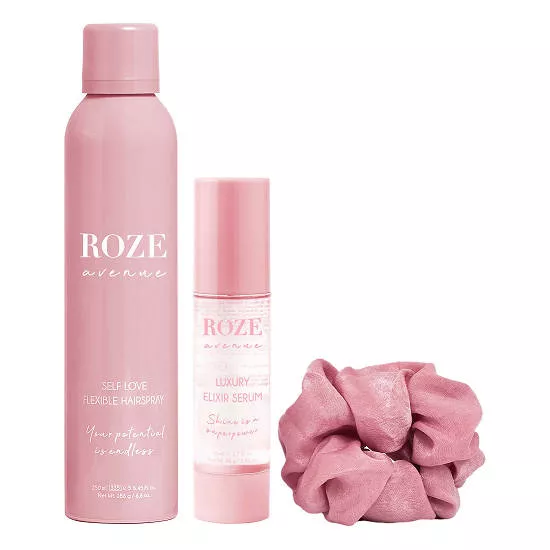 Roze Avenue Stylish Mesh Bag, zestaw lakier do włosów + serum + gumka scrunchie, 250ml + 50ml