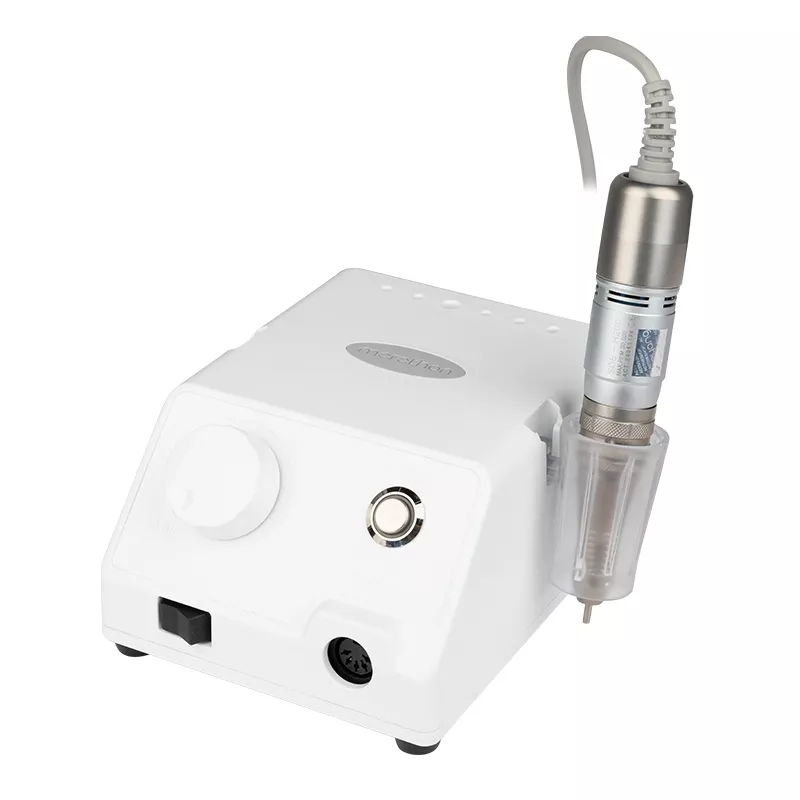 Frezarka Marathon Escort III to najnowsza odsłona po znanej wcześniej wersji Escort Pro II. Odznacza się najnowszymi zastosowaniami technologicznymi oraz wyjątkową głowicą H200. Możesz liczyć na cichą pracę oraz brak przeszkadzających wibracji. Mechanizm prędkości sterowany jest pokrętłem, zaś liczba obrotów wynosi od 0-30 tysięcy. System jest automatycznie zabezpieczony przed przeciążeniem.