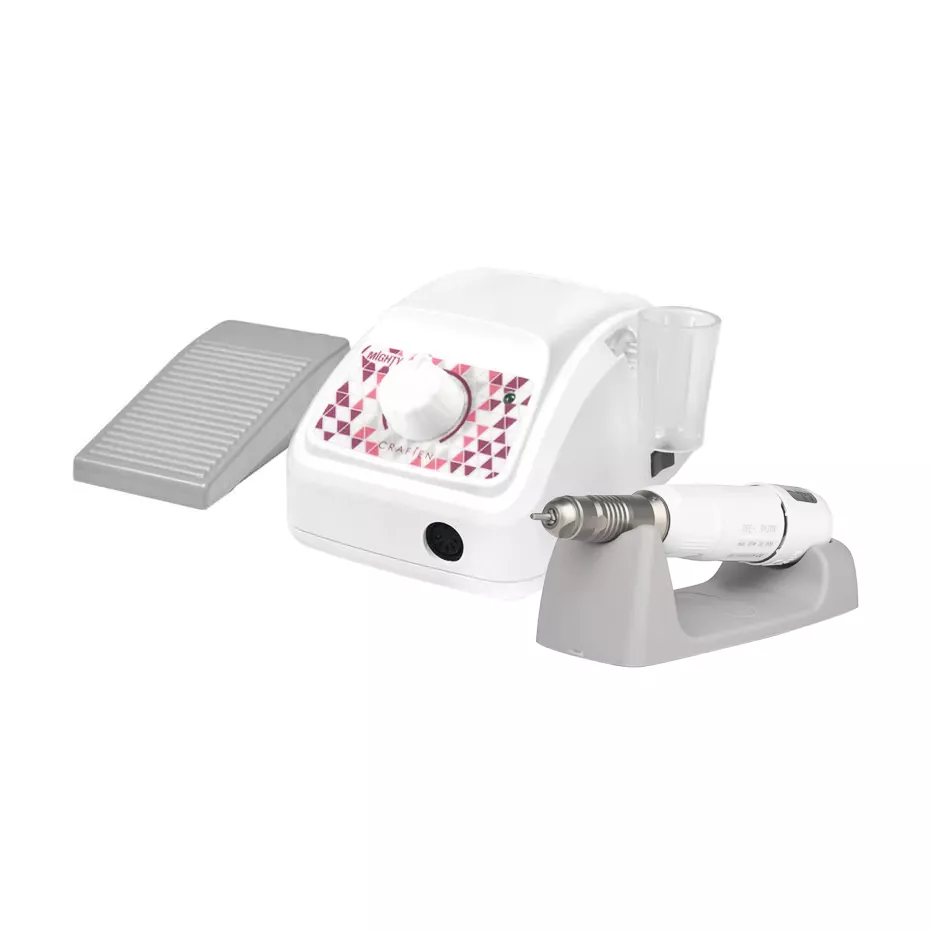 - Łatwa obsługa dzięki włącznikowi i regulacji obrotów w zasilaczu/bazie oraz możliwości sterowania pedałem nożnym.