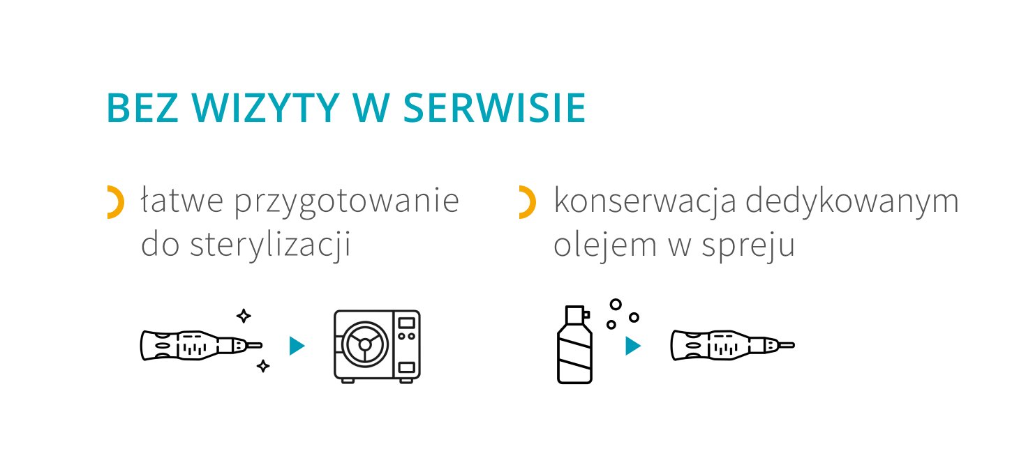 - Dwuczęściowa głowica (jedna część może być sterylizowana w autoklawie)