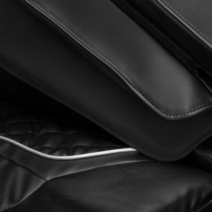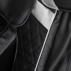 Miękka, przyjemna w dotyku imitacja skóry w odcieniach czerni zapewnia wysoki komfort użytkowania i łatwość pielęgnacji. Materiał jest estetyczny, odporny na wilgoć i praktyczny w codziennym użytkowaniu. Zewnętrzne detale w kolorze srebra, zestawione ze strukturalnym wykończeniem w odcieniach czerni, nadają fotelowi nowoczesny, stylowy charakter. Kompaktowa forma i stonowana kolorystyka sprawiają, że model doskonale komponuje się z różnymi aranżacjami wnętrz. Sakura Prime 101 to idealna propozycja dla osób poszukujących codziennego odprężenia – zarówno po intensywnym dniu, jak i po wzmożonym wysiłku fizycznym.