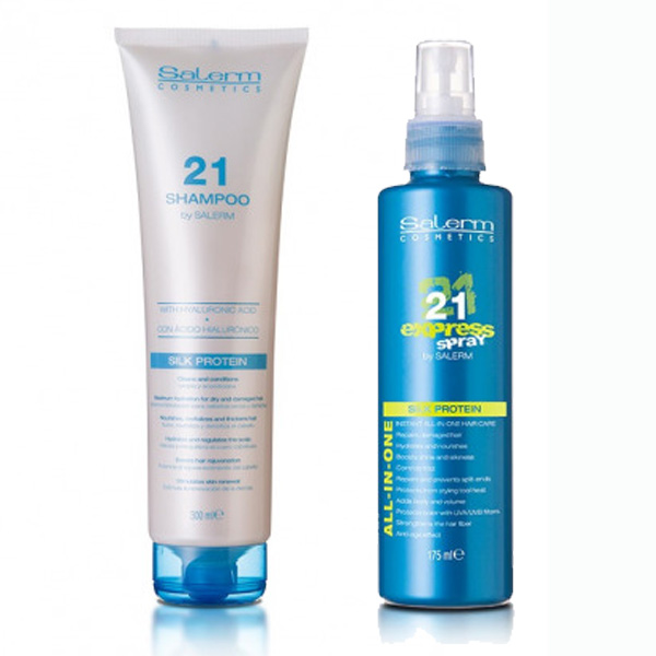 Odkryj Salerm 21 Express, lekką maskę do włosów w sprayu, która jest idealnym rozwiązaniem dla każdego rodzaju włosów, z naciskiem na te suche i zniszczone. Wzbogacona o proteiny jedwabiu i keratynę, ta innowacyjna formuła zapewnia intensywną regenerację i nawilżenie, jednocześnie chroniąc włosy przed szkodliwym działaniem promieni słonecznych.
