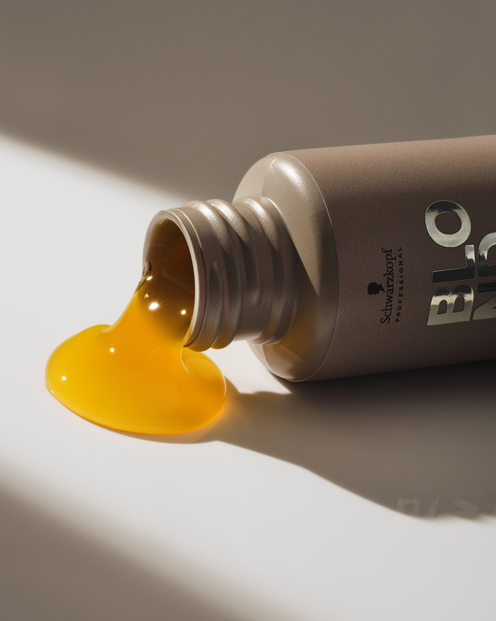 Spłukiwanie i pielęgnacja: Dokładnie spłucz toner ciepłą wodą, aż woda będzie czysta. Na zakończenie zastosuj odpowiedni produkt pielęgnacyjny z gamy BLONDME.